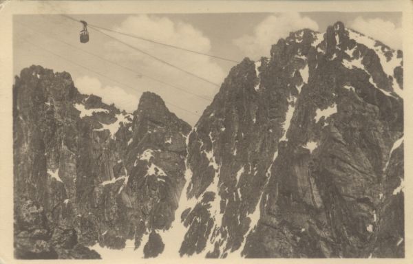 Tatry Wysokie. Kolej linowa na Łomnicę, po prawej stronie Kieżmarski Szczyt.