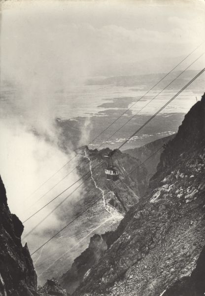 Kolej linowa na Łomnicę. Poniżej szlak turystyczny z Przełęczy Łomnickiej na górn± stację kolei krzesełkowej, w głębi Smokowiec.