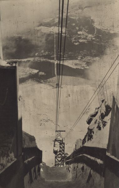 Vysoké Tatry - Lanovka na Lomnický ątít 2634 m. n. m. Pohµad s Lomnického ątítu na celú tra» lanovky.