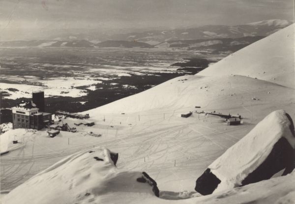 Tatry Wysokie - Łomnicki Staw Widok na stację kolei linowej i na tereny narciarskie.