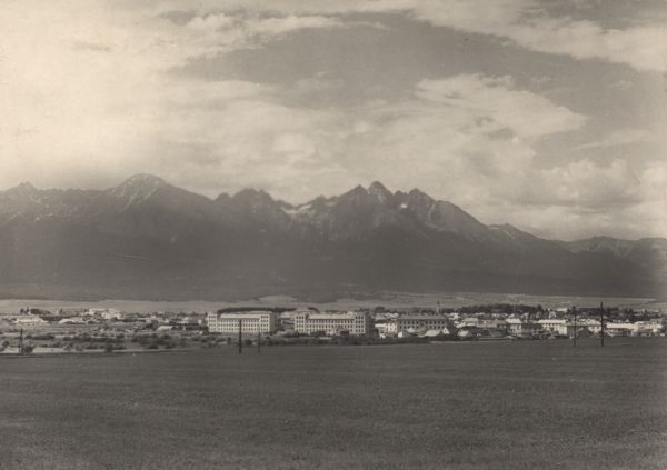 Widok na Poprad. W tle panorama Tatr Wysokich: Sławkowski Szczyt, Łomnica, Kieżmarski Szczyt.